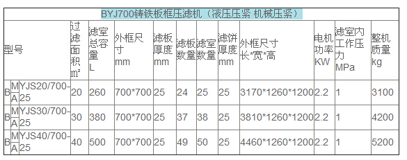 BYJ700鑄鐵板框壓濾機(jī)(液壓壓緊 機(jī)械壓緊) 單價(jià):20000元整