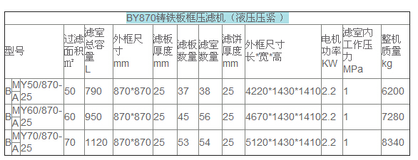 BY870鑄鐵板框壓濾機(jī)(液壓壓緊 )單價(jià):42000元整