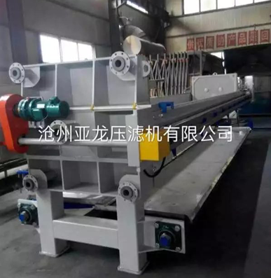板框壓濾機操作周期, _是壓緊:過濾設(shè)備告訴您壓濾機在操作前須要進行整機檢查:查看濾布有無打折或重疊現(xiàn)象,電源是否已正常連接。檢查后即可進行壓緊操作,首先按一下“啟動”按鈕,油泵開始工作,然后再按一下“壓緊”按鈕,活塞推動壓緊板壓緊,當壓緊力到達調(diào)定高點壓力后,液壓系統(tǒng)自動跳停。